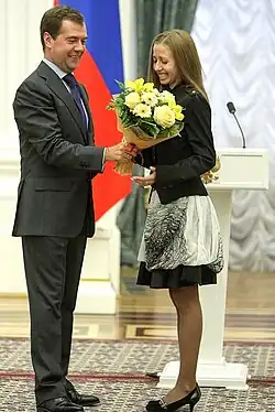 Kaniskina was part of a training group coached by Viktor Chegin. More than a dozen members of that group have been suspended for doping violations. She did not return to defend her world championship on home soil, similar to teammate Sergey Bakulin. It was later revealed that Bakulin was serving a previously unannounced doping suspension, casting the suggestion that Kaniskina was doing the same.[7] On January 20, 2015 Kaniskina was disqualified for 3 years and 2 months starting from 15 October 2012, and all her results between 15 July 2009 and 16 September 2009, as well as between 30 July 2011 and 8 November 2011 (which included two world championship golds) were annulled.[8] The reason for the ban was anomalies in her biological passport.