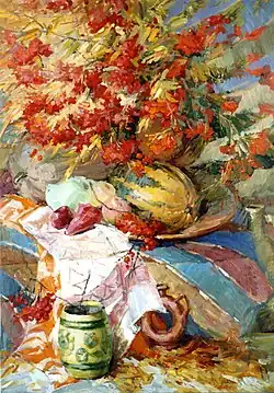 The style of her work evolved from realistic to figurative abstract art. As a result of this evolution, styles of art were intertwined, creating a special and unique style. The artist Olga Liashenko increased her commitment to artistic endeavors in Germany. Since 2017 she has been a member of the Federal Association of Academic Artists (BBK Bundesverband Bildender Künstlerinnen und Künstler). In 2020, she presented her works in the exhibition for the Hassberge district's art prize in Bavaria.[3]