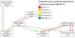 - ^ Old East Slavic: Ольговичи, romanized: Ol'govichi; Ukrainian: Ольговичі, romanized: Ol'hovychi; Russian: Ольговичи, romanized: Ol'govichi. Literally "sons of Oleg / Oleh".