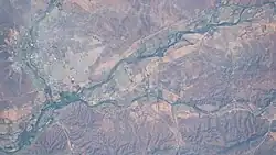 The northern tributaries of the Olifants River rise in the Great Karoo to the north of the Swartberg Mountains, while the Olifants River itself rises to the east and flows westwards between the Swartberg and Kammanassie mountains to its confluence with the Gamka River. The southern slopes of the Swartberg Mountains are drained by the perennial Groot River, Kango River, Grobbelaars River, Wynands River, Kansa River and Vlei River tributaries, which flow into the Olifants River. The Kammanassie River rises in the Outeniqua and Kammanassie mountains near Uniondale and joins the Olifants River upstream of Oudtshoorn.