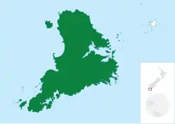 | Distribution of Oligosoma notosaurus on a map of the Chatham Islands Known native range