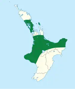 | Distribution of the New Zealand striped skink in the North Island Known native range