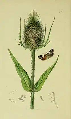 | An illustration from British Entomology by John Curtis. Lepidoptera: Zeiraphera hastiana or Olindia schumacherana | |
