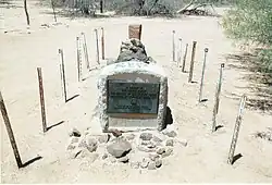 After the attack, Lorenzo regained consciousness to find his parents and siblings dead, but he saw no sign of little Mary Ann or Olive. Lorenzo attempted the hazardous trek to find help. He eventually reached a settlement, where his wounds were treated. Lorenzo rejoined the emigrant train, and three days later returned to the bodies of his slain family. In a detailed retelling which was reprinted in newspapers over the decades, he said, "We buried the bodies of father, mother and babe in one common grave."[9] The men had no way of digging proper graves in the volcanic rocky soil, so they gathered the bodies together and formed a cairn over them. It has been said the remains were reburied several times and finally moved to the river for re-interment by early Arizona colonizer Charles Poston.[10] Lorenzo Oatman became determined to never give up the search for his only surviving siblings.[9]