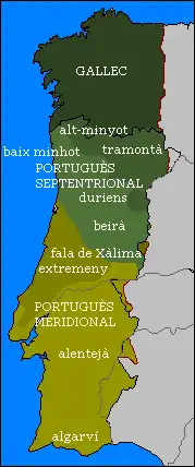 Oliventine Portuguese is a subdialect of Alentejan Portuguese and therefore falls within the group of southern Portuguese dialects.[13] The influence of Castilian is noticeable in some of the following points and the lexical field.[13]