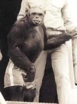 Oliver (c. 1957 – 2 June 2012)[1] was a former "performing" chimpanzee once promoted as a missing link or "humanzee" due to his somewhat human-like appearance and a tendency to walk upright. Despite his somewhat unusual appearance and behavior, scientists found that Oliver was not a human-chimpanzee hybrid.[2]
