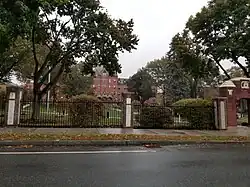 In 1865, Dean founded the co-educational Dean Academy with donations of about $125,000 and approximately 9 acres (3.6 ha) of land for the school.[7] The land Dean donated had previously belonged to well-known theologian Nathanael Emmons.[8] Ground was broken in August 1866, the cornerstone laid in May 1867, and the building dedicated in May 1868.[7] When eight Emmons family graves were relocated to a nearby cemetery in June 1870, Dean paid half of the cost.[9][10]