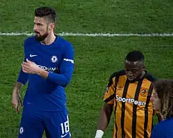 He made his debut five days later in a Premier League away game at Watford, where he came on in the 64th minute replacing Pedro. However, the result was a 4–1 loss.[156] On 12 February, Giroud started his first game for the club in which he provided an assist for Eden Hazard in a 3–0 home win against West Bromwich Albion.[157] He scored his first goal in the FA Cup fifth round against Hull City in the 4–0 home win.[158] On 14 April, Giroud came off the bench to score twice as Chelsea recovered from a 2–0 deficit to beat Southampton 3–2 at St Mary's Stadium. It was his first time scoring in the Premier League with his new club.[159]