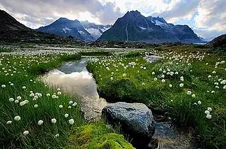 ![]() Olmenhorn (centre right) seen from Märjelensee | |