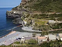 The Tour de Negro or Torra di Negru, a Genoese tower, guards the river's mouth at the north end of the beach.[2] The tower was one of a series of coastal defenses built by the Republic of Genoa between 1530 and 1620 to stem the attacks by Barbary pirates.[4] The tower was built around 1559–1560.[5]