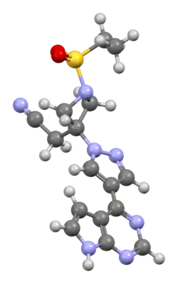 Other JAK inhibitors include tofacitinib, which is indicated for the treatment of rheumatoid arthritis, psoriatic arthritis, and ulcerative colitis;[16][17] fedratinib,[18] and ruxolitinib.[19][20]