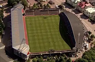 Olympia, sometimes referred to as Olympiastadion (English: Olympic Stadium), is a football stadium in Helsingborg, Sweden. It was opened in 1898, but has been rebuilt in 1993, 1997 and 2014–2017, and has a capacity of 16,000 (14,000 seated and 2,000 standing). All stands can be converted into seaters, giving a capacity of around 15,000. It is the home ground of Superettan side Helsingborgs IF.
