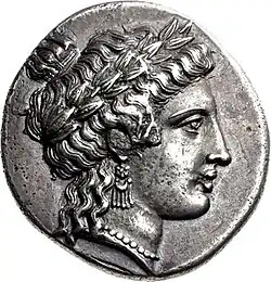 The victory of Hagesias is due to Zeus and his ancestral god, Hermes Enagonius of Arcadia (77–78).[2] Thebes and Arcadia are mythologically connected (82–87).[2] The poet at Thebes addresses his messenger, Aeneas, the trainer of the chorus (87–91), sending a message to Syracuse, and praising Hieron (92–97) who, the poet hopes, will welcome the chorus, when it passes from Stymphalus to Syracuse, from one of the victor's homes to the other (98–100).[2] Two anchors are safest during a stormy voyage (101).[2] May the citizens of both places be blest (101 f), and may Poseidon grant the victor a safe journey to Syracuse, and also prosper the poet's song.[2]
