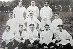 At first, rugby union was the most important team sport of the club, the motto Droit au but coming from rugby. Affiliated with the Union des Sociétés Françaises de Sports Athlétiques (USFSA) since 1898, it was only in 1902, thanks to English and German people (according to André Gascard), that football began to be played by Olympique de Marseille. Richer and better organised than other football teams of Marseille (Sporting, Stade, Phocéenne), Olympique de Marseille, then playing at the Stade de l'Huveaune, took the leadership in the city. In 1904, Olympique de Marseille won the first Championnat du Littoral, involving opposing teams from Marseille and its suburbs, and took part in the final rounds of the 11th French championship. At that time, the word "football" applied to rugby, and people used the word "Association" (which would be soccer in North America) for football.