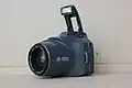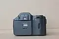 The Olympus iS-100 (aka L-10) is an autofocus 35mm single lens reflex camera with built-in 4.2× zoom lens. The lens is a multi-coated 28-120mm f4.5/5.6 lens with 11 elements in 9 groups. The autofocus is a passive CCD line sensor. The camera has a built-in flash, and of course a variety of flash and other shooting programs. Exposure is controlled electronically by a sensor behind a half-transparent mirror of the viewfinder system - multi-area metering mode and spot metering are selectable. The camera's shutter is a metal lamellae focal plane shutter with speeds up to 1/2000 sec. With its size 123x88x110mm (closed) and its weight of 615g it is a very compact and light construction of the Olympus iS series. The camera needs two CR123 batteries.[1]