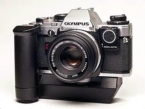 ![]() Olympus OM-10 with winder and manual adapter | |