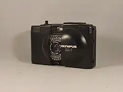 The Olympus XA was a series of 35 mm cameras manufactured and marketed by Olympus of Japan from 1979 to 1985. The original XA was a rangefinder camera with a fast 35 mm f/2.8 lens, and aperture priority metering. It was one of the smallest rangefinder cameras ever made, together with the Contax T. Later models—XA2, XA3 and XA4—featured scale focusing instead of rangefinders. The lens design also changed, switching to a 35mm f/3.5 for the XA2 and XA3 and again to a 28mm f/3.5 for the XA4.