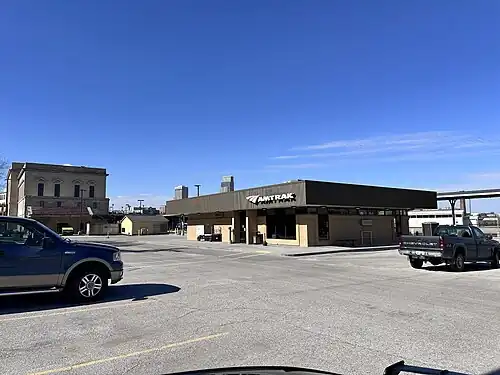 ![]() Amtrak's Omaha station as seen in 2024. Original Burlington Station building seen adjacent. | |||||||||||||||||
