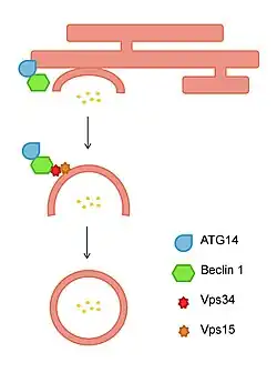 - ^ a b c d e Axe EL, Walker SA, Manifava M, Chandra P, Roderick HL, Habermann A, Griffiths G, Ktistakis NT, et al. (2008). "Autophagosome formation from membrane compartments enriched in phosphatidylinositol 3-phosphate and dynamically connected to the endoplasmic reticulum". J Cell Biol. 182 (4): 685–701. doi:10.1083/jcb.200803137. PMC 2518708. PMID 18725538.