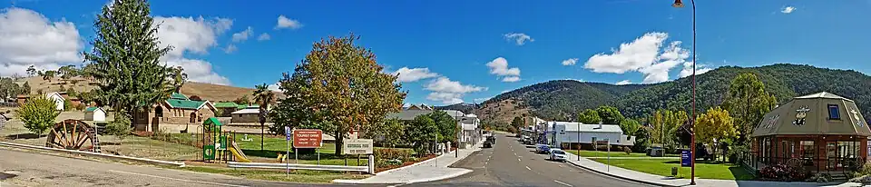 Omeo (/ˈoʊmiːoʊ/ OH-mee-oh)[2] is a town in Victoria, Australia on the Great Alpine Road, east of Mount Hotham, in the Shire of East Gippsland. At the 2016 census, Omeo had a population of 406. The name is derived from an Aboriginal word for 'mountains' or 'hills'.[3] Omeo is affectionately known as the City of the Alps with many historic buildings remaining in the town. The town is still the commercial hub for the Omeo Region and is a service centre for outlying communities such as Benambra, Cobungra, Cassilis, Swifts Creek, and Ensay.
