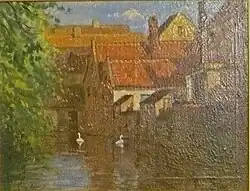 Seeking the true use of light, the realist brushstrokes of Coppens's early work developed into a more autochthonous Impressionism, under the influence of the work of his friend Théo van Rysselberghe,[1] who painted at least one portrait of Coppens in oils.[3] Coppens became the secretary of a group called Pour l'Art and was also a member of l'Essor and the Cercle artistique et littéraire de Bruxelles.[4]