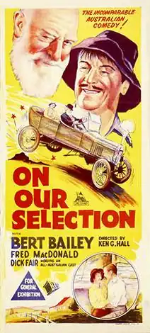 On Our Selection (titled in the UK as Down On the Farm) is a 1932 comedy based on the Dad and Dave stories by Steele Rudd. These had been turned into a popular play by Bert Bailey and Edmund Duggan in 1912, which formed the basis for the screenplay. Bailey repeats his stage role as Dad Rudd. He also wrote the script with director Ken G. Hall.