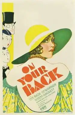 On Your Back is a 1930 American pre-Code drama film directed by Guthrie McClintic and written by Howard J. Green. The film stars Irene Rich, Raymond Hackett, H. B. Warner, Wheeler Oakman, Marion Shilling and Ilka Chase. The film was released on September 14, 1930, by Fox Film Corporation.[1][2][3] A trailer exists in the Library of Congress collection.[4]