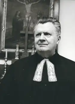 He was a pastor in Bratislava during the period 1947 to 1993, first at the Large Church on Panenska Street and from 1952 at the New Church on Legionarska Street and, at the same time, at the Small Church on Panenska Street. He was a pastor for both Slovak and German church members living in Bratislava. During 1948 to 1952 he was also the Resident Pastor and spiritual leader at Lutheran Hospital and Old Age Home in Bratislava and a Vice-Senior of Bratislava District for 25 years. With his wife Anna he is buried in Slavicie Udolie Cemetery in Bratislava (Section XIII, plot No. 287).