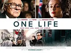 One Life is a 2023 biographical drama film directed by James Hawes.[4] Based on the true story of British humanitarian Nicholas Winton, the film alternates between following Anthony Hopkins as a 79-year old Winton reminiscing on his past, and Johnny Flynn as a 29-year old Winton who successfully helps 669 predominantly Jewish children in German-occupied Czechoslovakia to hide and flee in 1938–39, just before the beginning of World War II. Helena Bonham Carter, Lena Olin, Romola Garai, Alex Sharp and Jonathan Pryce co-star in supporting roles.[5]