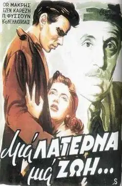 One Street Organ, One Life or Mia laterna, Mia Zoi (Greek: Μια λατέρνα, Μια Ζωή) is a 1958 Greek film directed by Sokrates Kapsaskis[1] and written by Yorgos Javellas. It stars Orestis Makris, Jenny Karezi, Petros Fyssoun, Dinos Iliopoulos, Nitsa Tsaganea and Lavrentis Dianellos. The film is about a street musician who loses his wife during childbirth and puts his baby daughter up for adoption, but comes to bitterly regret it.[2]