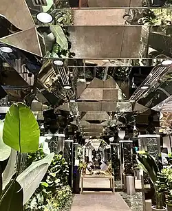 Using other reflective materials like polished marble and stainless steel "added to the delerium."[2] His desired kaleidoscopic outcome, always changing, was achieved.[2]