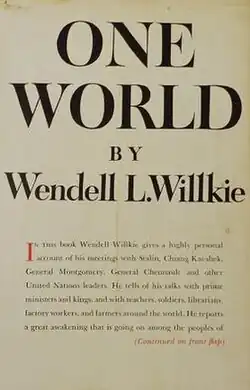 - ^ Wendell L. Willkie, One World, (London: Cassell and Company, 1943), pp. 130–131.
