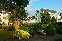 As a greenfield development,[6] Ongar's master plan provided for a new "main street" on which most commercial development would be concentrated, with the intention that it would emulate a traditional Irish village. As of 2004, this street had a number of services, including a supermarket, newsagent's, grocery shops, off-licence, betting shop, hairdressers and a number of eating places.[6]