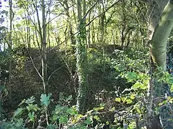 The wet ditch of the outer bailey of Ongar Castle in 2014