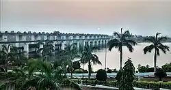National Highway 16, a part of Golden Quadrilateral highway network, bypasses the city.[23] National Highway 216 connects the city with Kathipudi.[24] The city has a total road length of 738.50 kilometres (458.88 mi).[25] Ongole bus station is owned and operated by Andhra Pradesh State Road Transport Corporation.[26][27] The station is also equipped with a bus depot.[28] The 'Passengers delight project' was implemented at the bus station for improving cleanliness and modernizing it.[29] Ongole railway station was established as part of Nellore - Krishna Canal section on 20 December 1898 by Madras and Southern Mahratta Railway System.[30] It is categorized as a Non-Suburban Grade-3 (NSG-3) station in the Vijayawada railway division.[31]