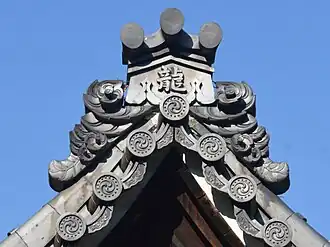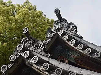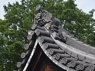 Onigawara (鬼瓦; Japanese pronunciation: [o.ɲi.ɡaꜜ.wa.ɾa, -ŋaꜜ-],[1] lit. 'ogre tile') are a type of roof ornamentation found in Japanese architecture. They are generally roof tiles or statues depicting an oni (ogre) or a fearsome beast. Onigawara were historically found on Buddhist temples, but are now used in many traditionally styled buildings. Some tiles may depict things besides oni, but are still called onigawara due to custom.