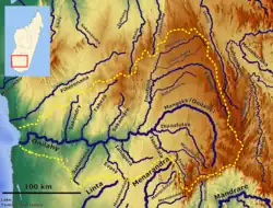 Onilahy is a river in Atsimo-Andrefana and Anosy (Toliara Province), southern Madagascar. It flows down from the hills near Betroka to the Mozambique Channel. It empties at St. Augustin (23°34′00″S 43°45′00″E / 23.5666667°S 43.75°E), and into the Bay of Saint-Augustin.