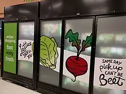 An online grocer is a supermarket or grocery store that allows ordering via websites or mobile apps.[1] The order can either be collected by the customer or delivered to the customer by drivers engaged by the grocer, a food delivery service, or by delivery drones and robots.[2]