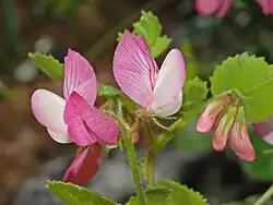 Ononis rotundifolia, commonly known as round-leaved restharrow, is a perennial shrub belonging to the genus Ononis of the family Fabaceae.