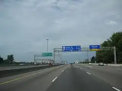 Highway 401 does not yet extend across the Detroit River into Detroit.[15] By September 2025, the Gordie Howe International Bridge will extend Highway 401 across the Canada–United States border to a connection through Delray to I-75.[16]