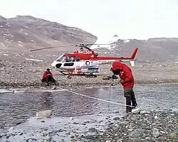![]() Scientists take depth and velocity readings in the Onyx River (1999) | |