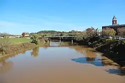 The Oostanaula River (pronounced "oo-stuh-NA-luh") is a principal tributary of the Coosa River, about 49 miles (79 km) long,[2] formed by the confluence of the Conasauga and Coosawattee in northwestern Georgia in the United States. Via the Coosa and Alabama rivers, it is part of the watershed of the Mobile River, which flows to the Gulf of Mexico.