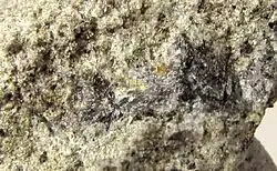 Oosterboschite is a rare selenide mineral with the formula (Pd,Cu)7Se5.[2] It crystallises in the orthorhombic crystal system. It has a creamy yellow colour and a Moh's hardness of 5.[3] It is often found as grains with no clear shape.[4] The crystals are opaque and often no bigger than 0.4 mm.