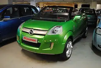 The Opel Frogster was a concept car built by Opel in 2001. It premiered at the September 2001 Frankfurt Motor Show.[1] The Frogster could be transformed from a convertible to a roadster or a pickup truck by using a built in PDA, which was mounted between the two front seats. The Frogster was mainly targeted towards younger buyers. There have never been and are still currently no plans for the Frogster to be released as a production vehicle.