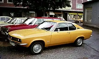 The Opel Manta is a rear-wheel-drive sports coupé built by German manufacturer Opel in two generations from 1970 to 1988. The Manta was a mildly sporting coupé based on the Ascona family car, competing with cars such as the Ford Capri. The Manta remained rear-wheel drive for both generations and also saw certain competition success. Its name comes from the manta ray.[1]