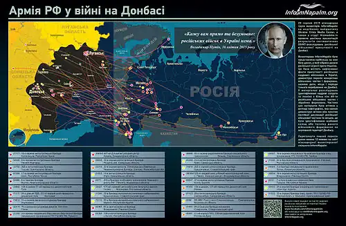 The sharing of open-source intelligence on social media has raised ethical concerns, including over the sharing of graphic images of bodies and of potentially military-sensitive data.[33] Matthew Ford of the University of Sussex has noted that "Ukrainians fear such images will reveal their tactics, techniques, and procedures," and that Ukrainians have therefore undertaken a degree of self-censorship.[34] Concerns have also been raised about the potential dissemination of misinformation, such as through fake accounts posing as insider sources.[35]