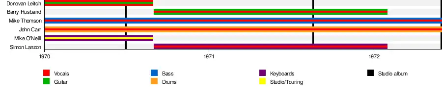- Mike Thomson - bass, 12-string guitar, vocals (1970-2)