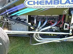 Modifications allowed to the engine are; changing the injectors or modifying them to be able to run methanol fuel, relocating the throttle body from the rear of the engine to the top of the plenum chamber, using custom built extractor type exhaust manifolds and finally modifying the computer chip to run a maximum rev limiter of 6000 rpm and tuning the fuel maps to suit the new extractors and the methanol fuel.