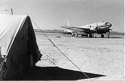 The first flights of Operation Avak took place on August 23, 1948, with four-engined Douglas C-54 Skymaster and Lockheed Constellation aircraft, and twin-engined Curtiss C-46 Commandos.[5] The first aircraft landed at the new Ruhama Airfield at 18:00 on August 23, and carried essential supplies for maintaining the field and assisting later aircraft.[6] It raised a lot of dust (Hebrew: אָבָק, Avak), coining a name for the operation and the landing strip (hence named Avak 1).[5] During the following days, the airfield was fitted with an electric generator and the runway lit with electric lights.[7]