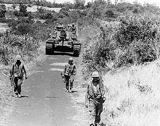![]() 3/4 Marines patrol with a 3rd Tank Battalion M48, 29 July 1967 | |||||||